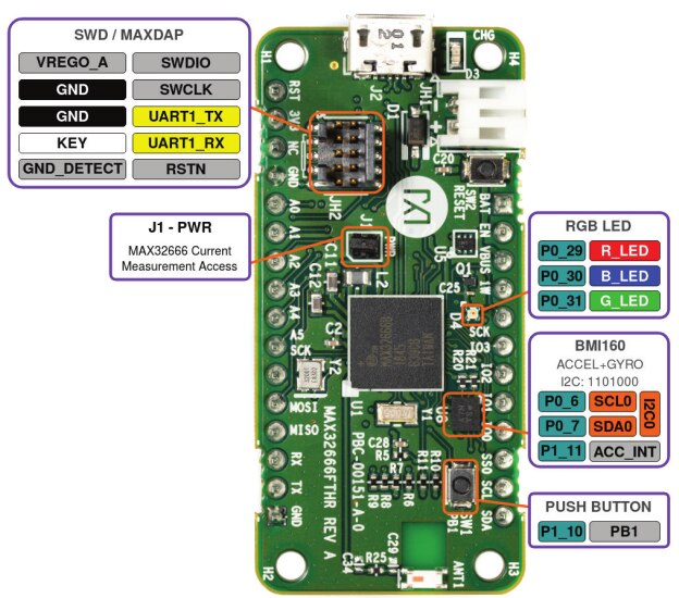 MAX32666FTHR Top Side Components Source: MAX32666FTHR Application Platform (319-100525; Rev 0; 3/20) |