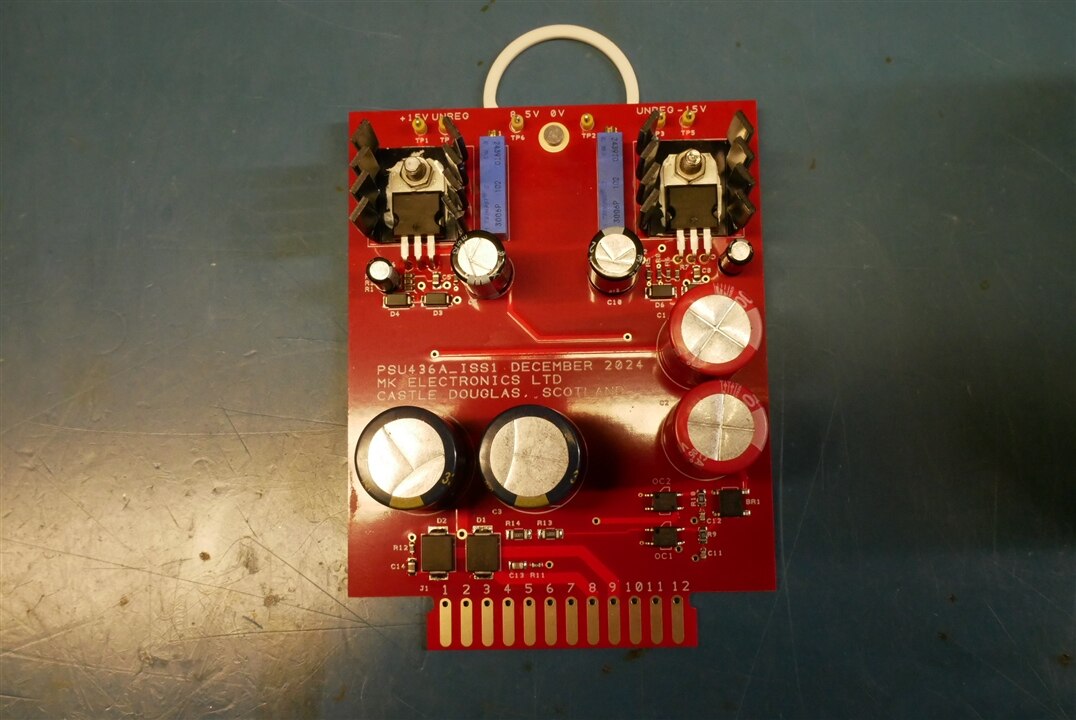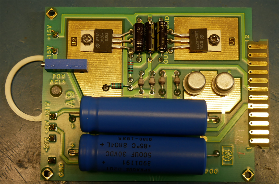 Like the original it has the rectifier for the 5V supply but not the regulator. My board does have the smoothing caps for the 5V supply - in the 50 years since HP designed this thing capacitors have got a lot smaller too !