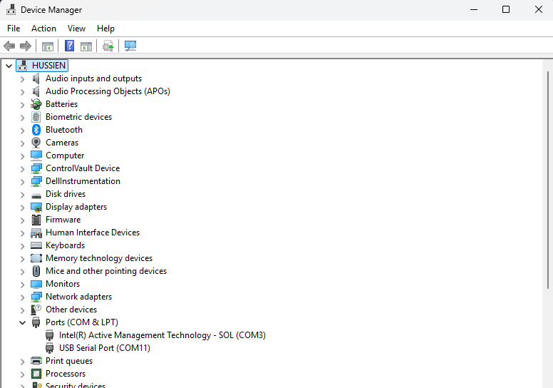 Of all the three worksheet, we will use the first worksheet which is the TinyGUI to control the output voltage. But before that we need ensure that the ROHM board is connected to the PC. Plug in the USB cable from the PC to the ROHM board. Next click "PORT READ" to get the correct port number. To ensure that the correct port is connected, we can double check in the device manager. As shown in the figure below