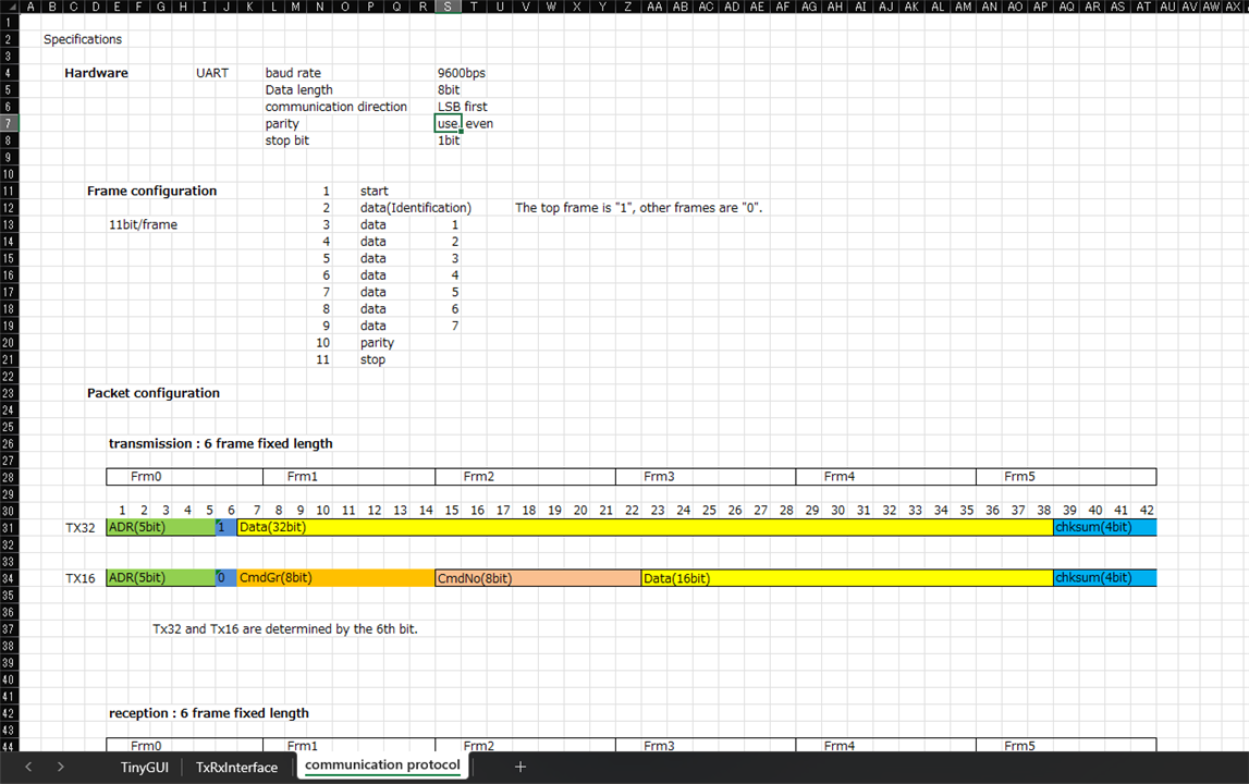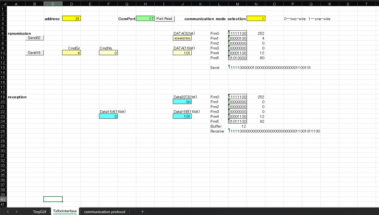 In the previous test we have successfully conducted the initial setup and conducted the test. In this section we would like to see the protocol for serial communications using UART, the communications functions and how to use the communication GUI developing environment. For this we need to download the excel file from the ROHM official site.