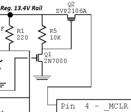 Seems that JohnB is one crack EE. Slamming the gate shut on a P-Channel FET is trivial by pulling it to ground, just as the original circuit shows, because VG << Vs. I will not claim to understand it deeply until I get my hands dirty with them.