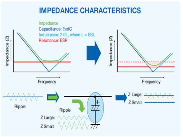 Thanks to their ultra low ESR values, polymer capacitors have a low impedance neartheir resonance point (see Image Below). And lower impedance reduces AC ripple in power circuits.