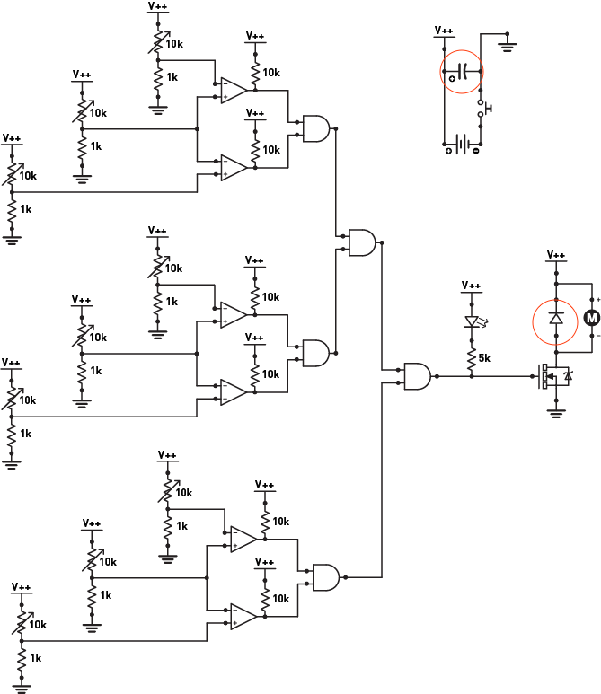 The diode that you have indicated is called a Flyback or Freewheeling diode and its purpose is to protect the circuit from inductive voltage spikes that will come from the coil when the circuit is opened This diode can be any standard diode similar to 1N40011N4001 as it only has to handle a very small current for a short period of time The capacitor that you have circled is a buffer capacitor that is used to stabilize the power supply When there is a sudden demand for current in the circuit a power supply may drop in voltage briefly and this can cause problems The capacitor provides a means to supply an extra short period boost of current to the circuit I would recommend a 100 uF to a 470 uF capacitor with a voltage rating that is about twice the voltage of your power supply