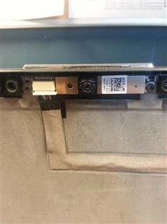 Here is a pic of the camera and mic board.  The four wires to the left were the USB for the camera.  It is the 3 wires to the right.  The Mics are inside the black rubber pieces next to the screws.