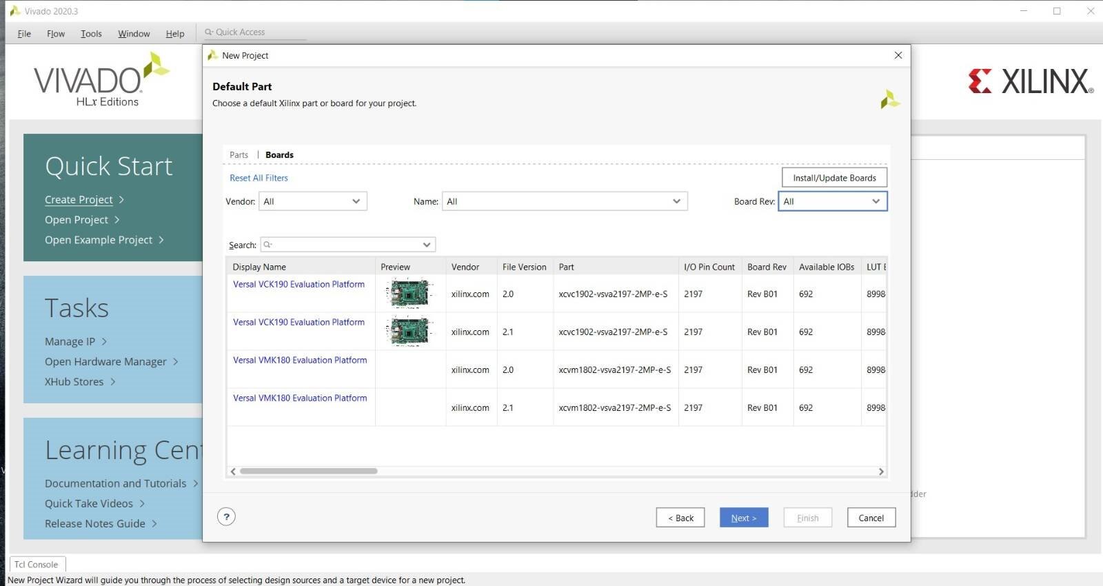 The result is that you can now create projects that have the right FPGA info for the Pynq-Z2: