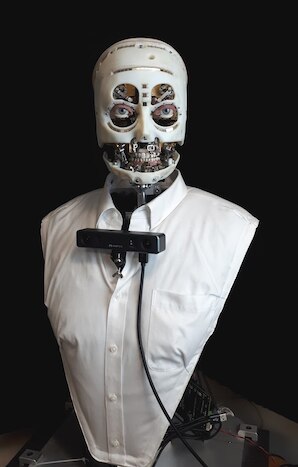 Robot Bust with a sensor on the chest to read environment.