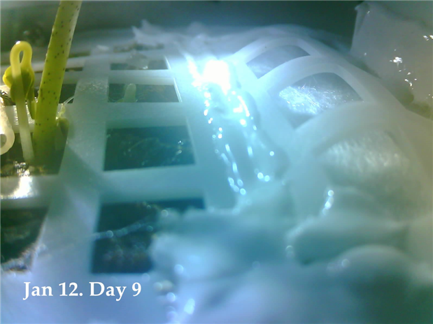 It didn’t last long. Bitter cold and a long night ended the plant’s growth. Day and night cycles on the moon are around two weeks long each. The plant sprouted and grew for almost two weeks. In the “nighttime” the temperatures are down to -170 degrees C. On the positive side, 120 degrees C, in the “daytime.” That’s too bad. It’s a shame they didn’t try to continue the growth with a heat source and lamp.
