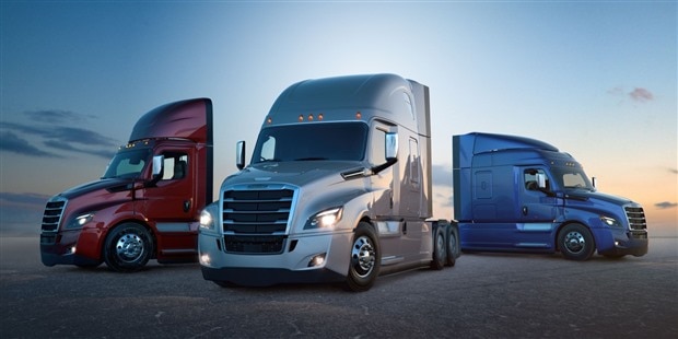 A pair of Daimler’s Freightliner eCascadia battery-powered trucks are headed to customers at their research and development center in Portland. (Image credit: Daimler)