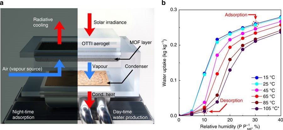 Pulling water out of the air - video (Video credit UC Berkeley and Berkeley Lab) https://www.youtube.com/watch?v=dvwmZKqPgKQ