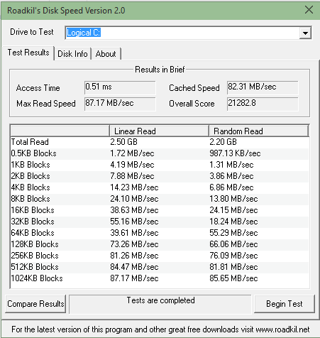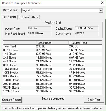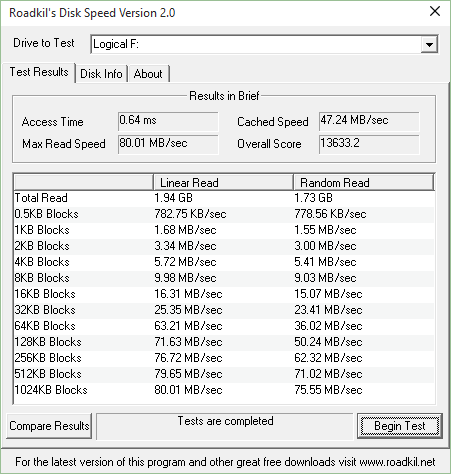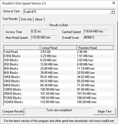 In addition to the benchmark tests, I also performed a 7,4GB file transfer to and from the cards, in all cases the read speed was close to double or more then the write speeds. In all cases the write speed was ultimately down around 50MB/Second but f you consider the purpose of these cards, that is way more than enough