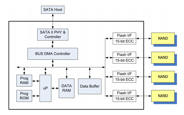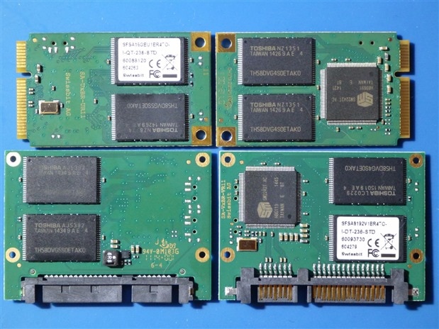 On close examination you will see that all four cards use the same controller, and SM2242 SATA Solid State Drive 4-Channel Flash Controller from Silicon Motion which acts as the interface between the NAND memory and the SATA differential drive interface