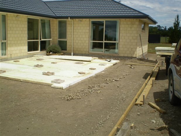 We elected to place polystyrene under the slab to retain the warmth, and extend the frost line.