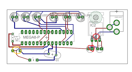 It's a basic design, where I use an Atmega 328 (along with its required voltage regulator, capacitors, etc.) and a series of LEDs I use to light up like the car from Knight Rider.