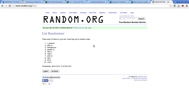 - I'll will pick a winner at random on Monday, December 30th, at 5pm US CDT.