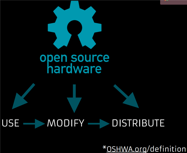Open source hardware is an alternative to the patent intellectual property (IP) structure.The communally written and accepted definition states, “Open source hardware is hardware whose design is made publicly available so that anyone can study, modify, distribute, make,and sell the design or the hardware based on that design. The hardware’s source, the design from which it is made, is available in the preferred format for making modifications to it.