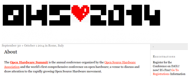 Then at the end of the month, the Open Source Hardware Association will hold the 5th Annual Open Hardware Summit, this year in Rome, Italy!