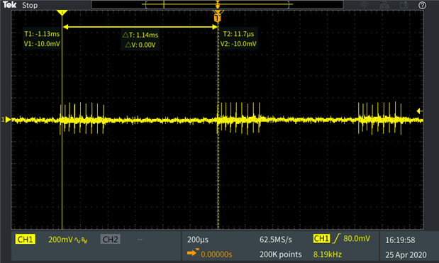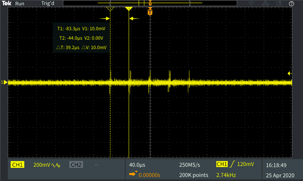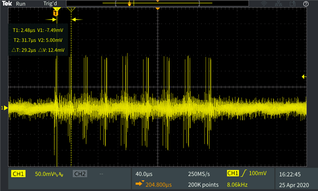 The first capture is zooming out on the noise train. 2nd one drills into the higher frequency within the noise trains: