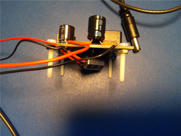 The fan is on the -12 V part. A 220 µF onthe output.