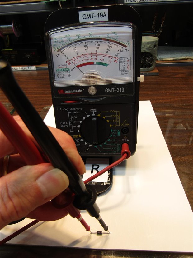 Below is a picture of the analog meter that I would take with me if I was going to check out your components on the board. Analog meters work better than digital for this purpose.
