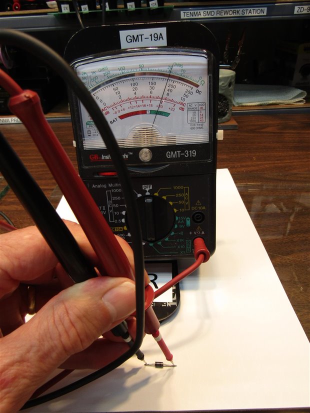 You may need to get yourself a small Analog meter if you are going to make these tests. I am not sure it can be done with your digital meter as their ohms measurements are sometimes made with voltages that are too low to work for these tests.