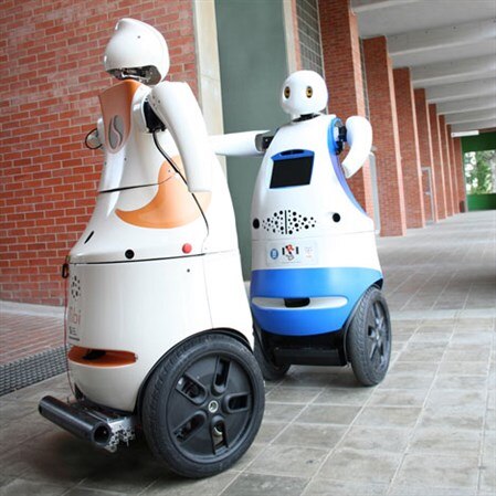 Yes its true, robots are indeed created to serve humans. Some, more so than others, help people in the outdoors with guidance and safety. An EU funded project, called ‘Ubiquitous networking Robotics in Urban Settings’, created the robots Tibi and Dabo to help with these tasks. The robots would autonomously navigate urban spaces, providing service information and guiding people to their destinations. Named after a mountain overlooking Barcelona, Tibi (orange) and Dabo (blue) were built at the Technical University of Catalonia (Institute of Robotics) and designed by ESDI (Escola Superior de Disseny) in Spain. Both robots were equipped with GPS sensors, stereo cameras, front and rear-facing laser range finders, and a chest-level touch screen. All of this was then mounted on top of a standard Segway, which provided a cheap mobile platform. According to the designers at ESDI, the robots were designed to reflect universal complementary opposites, such as masculinity and femininity or the Yin and Yang of Chinese philosophy. The robots were then used to research outdoor navigation and human-robot interaction. That’s great and all but using Google translate on the Technical University of Catalonia website, the robots might be used for a different purpose than to help, “Under this project, the UPC and created Tibi Dabo, two humanoid robots aimed at becoming guides and interact with humans. The two robots work together, since one of them leads and guides a group of people while the other is placed behind the group and ensures that any should perish.” Sounds like the robots might actually ‘march’ us off to their industrial ‘slave labor’ camps and eradicate us if we try to escape. Just kidding.