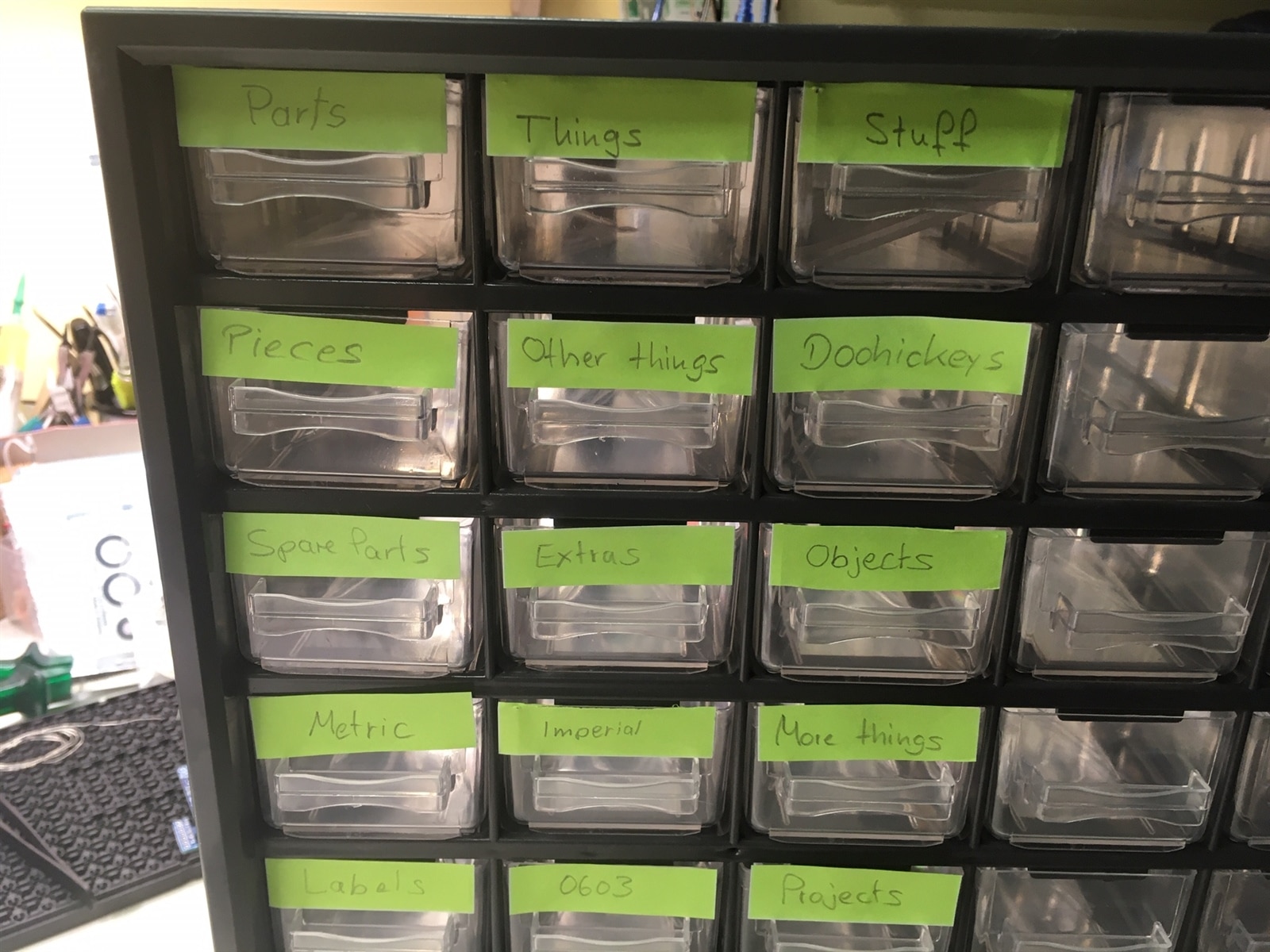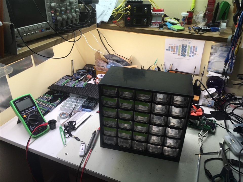 A late but big thanks to E14 again and again for giving away free stuff, that is actually useful. I received one of the Duratool storage cabinets with 30 drawers, but it had to wait its turn to become priority on the to-do list. And here it is with my workbench waiting to be organized.