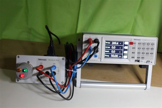When testing certified products there is no need to connect up an isolation transformer. Mains Power is connected to the Breakout box's input and the DUT connected to the Breakout output connector.