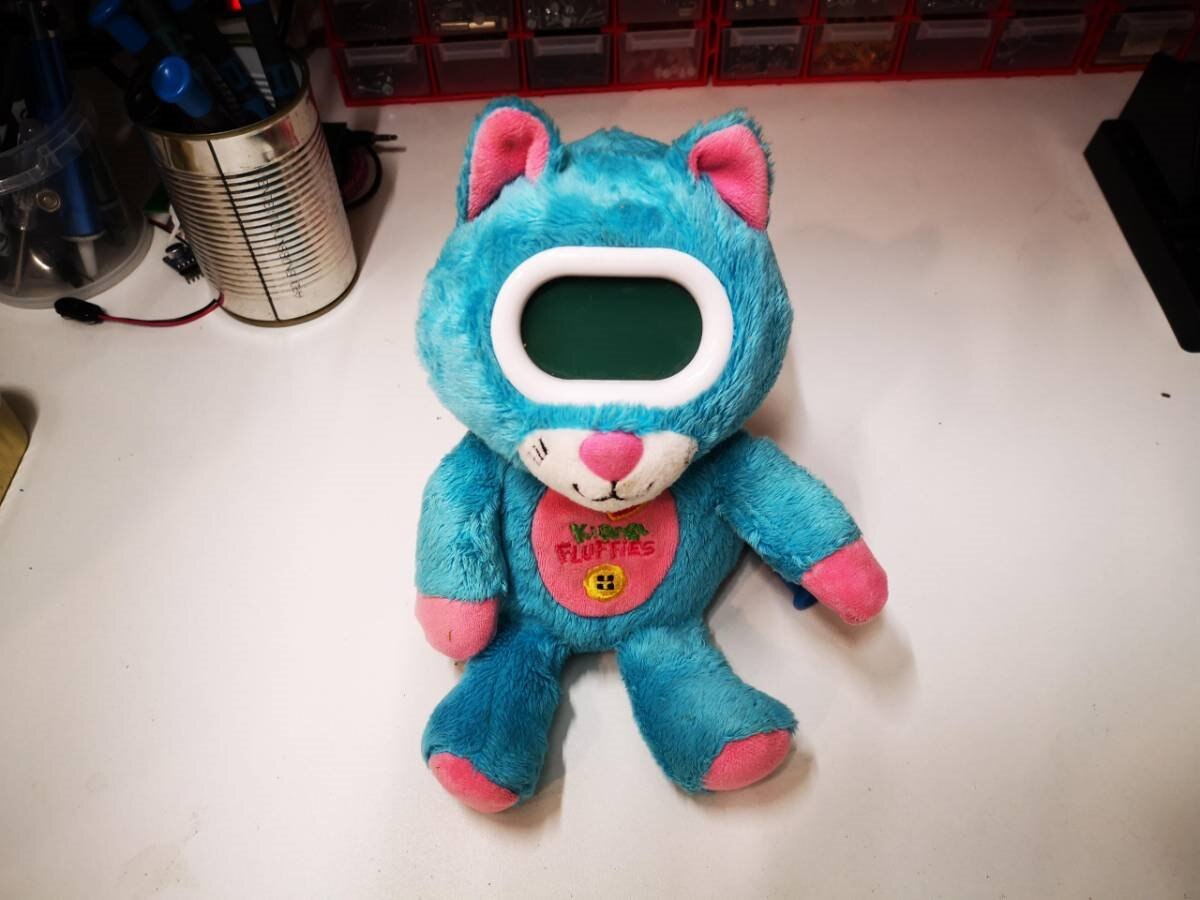 Does that cat have LCD eyes? If it does, it is probably asking for some hacking and lucky for you E14 is currently running an electronic toys project14.