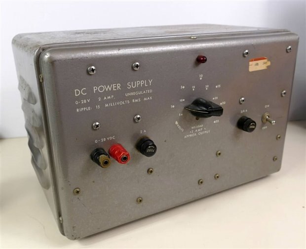 Here is my very first power supply. It was ancient when I bought it at a Ham radio flea-market a few decades ago. The guy who sold it to me said it was a Heathkit, but there are no Heathkit labels. It weights a ton. I should have a look at the output on a scope, 15 millivolts ripple on an unregulated supply at 2 amps @ 28 Volts is pretty good.