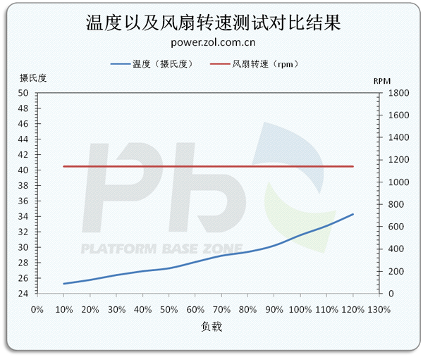 电源噪音主要源于风扇转速,风扇转速越快噪音就越大。虽说风扇转速低对噪音控制大有裨益,但是却会伤及温度的表现。所以本次测试我们将通过风扇转速和出风口的温度来综合考量静音效果。