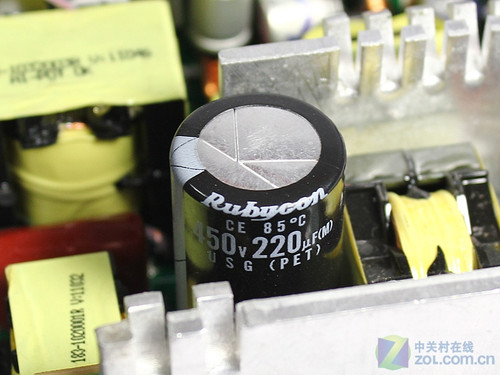 在PFC主电容方面,R90搭配了一颗日系Rubycon(红宝石)电容,容量为220μF,耐压值为450V,耐温为85摄氏度;而R80采用的是东阳光180uF电容,相比R90要逊色一些。