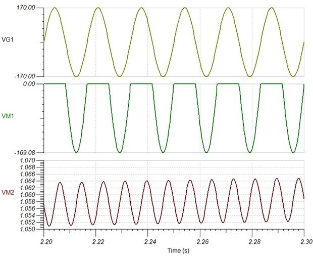 I built a circuit board to measure 120VAC using a Raspberry PI. I have a bridge rectifier and voltage divider. All using surface mount 1206 parts. Everything works well. When I put a voltmeter on the test point it shows 1/100th the line voltage in DC. However, when I actually look at it on a scope, I see that the ripple is 0 to 1.2v, essentially the full rectified voltage. The filter isn't doing hardly anything.