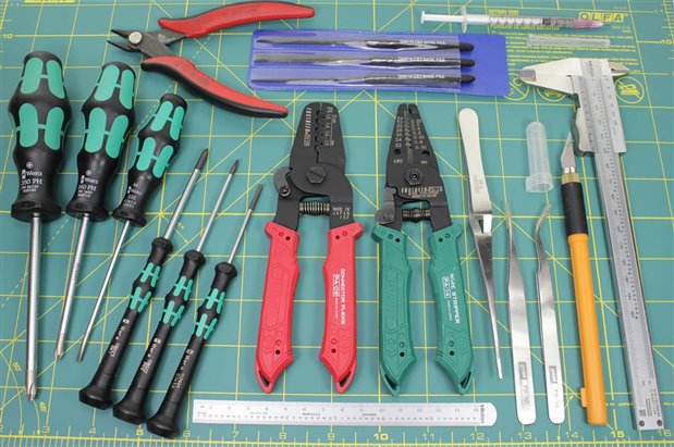 • Tweezers mostly for SMD work and soldering: Hozan P-89 self-closing tweezers, Goot standard precision tweezers TS-10 and Goot eagle-break precision tweezers TS-15