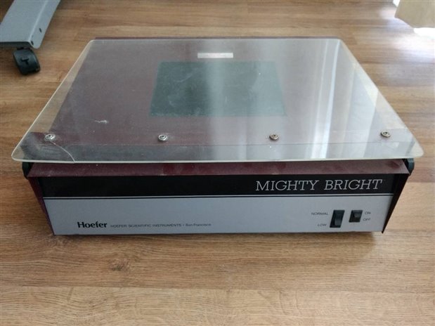 More scientific instruments... This one is a transilluminator, its a strong source of UV radiation that is used in molecular biology to make stuff fluoresce. My plan is to adapt it to make PCBs...