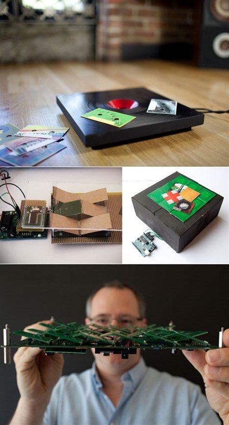 IDEO, a company famous for its innovative and creative design work has a new concept for playing music. Using RFID laden "cards," shaped like cassette tapes for nostalgia, thrown onto a fake record music is accessed on your computer. Throw on many cards will create a playlist of songs. IDEO's Design Director Martin Bone and Materials Scientist Kara Johnson goal for this project is to bring back the physical, tactile, feedback we all once had before the click or tap of MP3s.